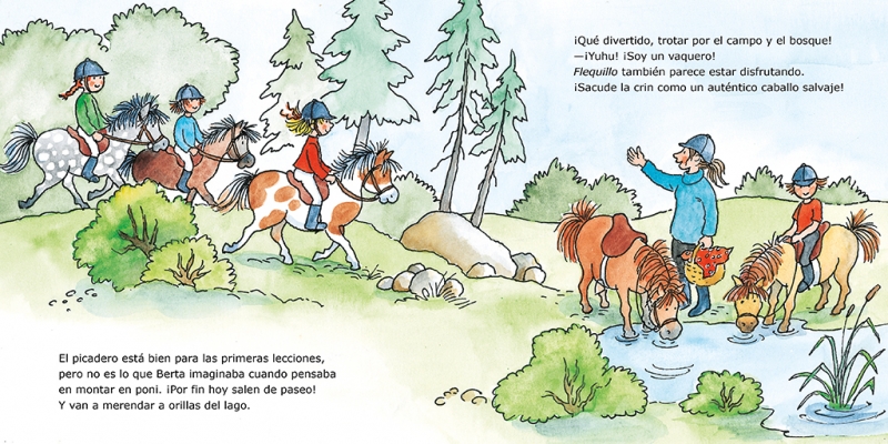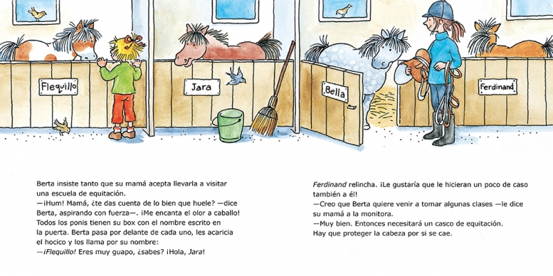 ¡Aprende a montar a caballo con Berta! Berta quiere que le regalen un poni, pero antes de empezar a montar, su madre la lleva a una escuela de equitación para que aprenda a ocuparse de él: darle de comer, cepillarlo, limpiar el box... Las cosas no son tan fáciles como parecen, ¡pero la diversión está asegurada! «Mi amiga Berta» es una colección de relatos divertidos y entrañables sobre la extraordinaria vida cotidiana de los más pequeños.