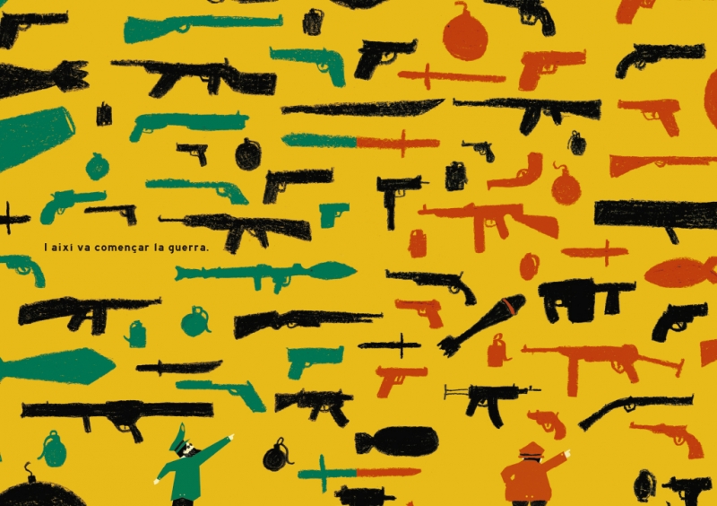 Un llibre il·lustrat de Ximo Abadia per explicar l'absurd de les guerres, de les dictadures i de qualsevol atac violent. Un àlbum il·lustrat per explicar el terrorisme amb l'estil únic de Ximo Abadia. Un dels grans mals del segle XXI és el terrorisme i el xoc d'ideologies. En aquest llibre, l'autor és capaç de tractar un tema tan delicat com la guerra i ens explica d'una manera molt natural per. directa la idea de conflicte, amb la potència visual que caracteritza els seus projectes.