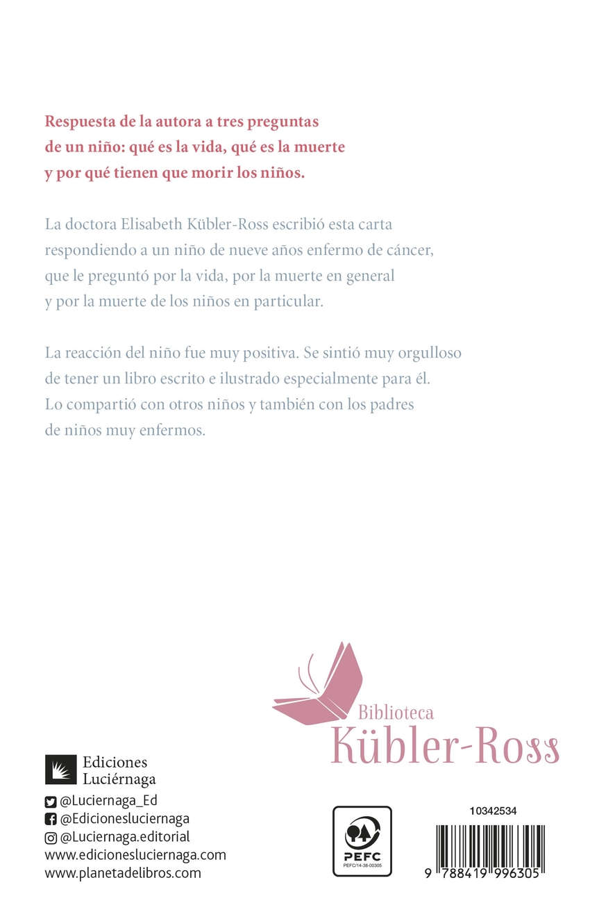 Respuesta de la autora a tres preguntas de un niño: qué es la vida, qué es la muerte y por qué tienen que morir los niños.La autora escribió esta carta respondiendo a un niño de nueve años enfermo de cáncer, que le preguntó por la vida, por la muerte en general y por la muerte de los niños en particular. La reacción del niño fue muy positiva. Se sintió muy orgulloso de tener un libro escrito e ilustrado especialmente para él. Lo compartió con otros niños y también con los padres de niños muy enfermos.