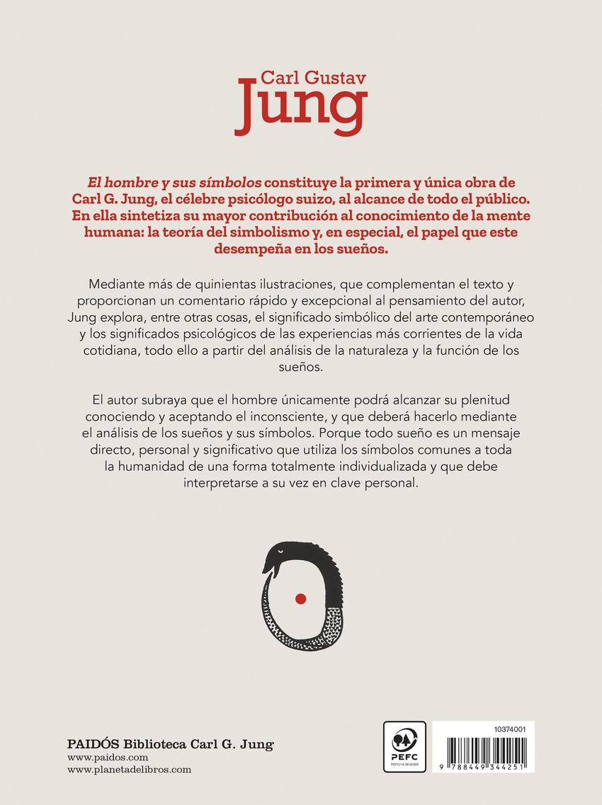 Recuperamos El hombre y sus símbolos, la primera y única obra de Carl G. Jung, el célebre psicólogo suizo, al alcance de todo el público.El hombre y sus símbolos constituye la primera y única obra de Carl G. Jung, el célebre psicólogo suizo, al alcance de todo el público. En ella sintetiza su mayor contribución al conocimiento de la mente humana: la teoría del simbolismo y, en especial, el papel que este desempeña en los sueños. Mediante más de quinientas ilustraciones, que complementan el texto y proporcionan un comentario rápido y excepcional al pensamiento del autor, Jung explora, entre otras cosas, el significado simbólico del arte contemporáneo y los significados psicológicos de las experiencias más corrientes de la vida cotidiana, todo ello a partir del análisis de la naturaleza y la función de los sueños. El autor subraya que el hombre únicamente podrá alcanzar su plenitud conociendo y aceptando el inconsciente, y que deberá hacerlo mediante el análisis de los sueños y sus símbolos. Porque todo sueño es un mensaje directo, personal y significativo que utiliza los símbolos comunes a toda la humanidad de una forma totalmente individualizada y que debe interpretarse a su vez en clave personal.