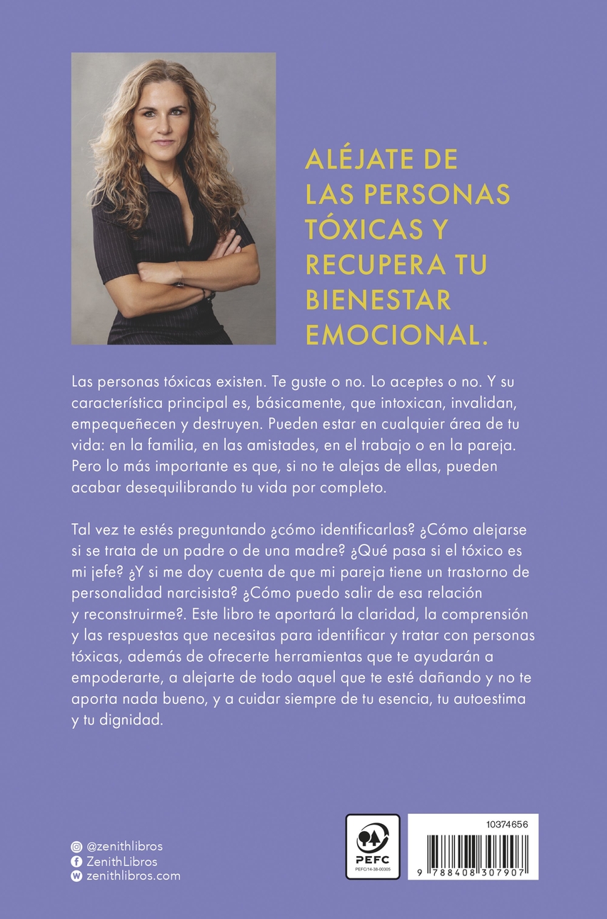 Aléjate de las personas tóxicas y recupera tu bienestar emocional.Las personas tóxicas existen. Te guste o no. Lo aceptes o no. Y su característica principal es, básicamente, que intoxican, invalidan, empequeñecen y destruyen. Pueden estar en cualquier área de tu vida: en la familia, en las amistades, en el trabajo o en la pareja. Pero lo más importante es que, si no te alejas de ellas, pueden acabar desequilibrando tu vida por completo. Tal vez te estés preguntando ¿y cómo identificarlas ¿Cómo alejarse si se trata de un padre o de una madre ¿Y qué pasa si el tóxico es mi jefe ¿Y si me doy cuenta de que mi pareja tiene un trastorno de personalidad narcisista ¿Cómo puedo salir de esa relación y reconstruirme Este libro te aportará la claridad, la comprensión y las respuestas que necesitas para identificar y tratar con personas tóxicas, además de ofrecerte herramientas que te ayudarán a empoderarte, a alejarte de todo aquel que te esté dañando y no te aporta nada bueno, y a cuidar siempre de tu esencia, tu autoestima y tu dignidad.