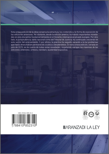 Edición adaptada a las novedades recientes en Derecho internacional privado europeo. La jurisprudencia, tanto nacional como procedente del Tribunal de Justicia, continúa desarrollándose significativamente en este ámbito. Además, la práctica ha revelado problemáticas previamente ignoradas o inadvertidas, enriqueciendo el contenido de esta obra. Todo ello se aborda con la claridad, síntesis y austeridad que caracteriza a anteriores ediciones, proporcionando a los lectores una herramienta eficaz y actualizada.