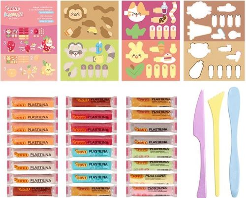 Cofre 24 barras plastilina 15g + modeladores + recortables serie kawaii
